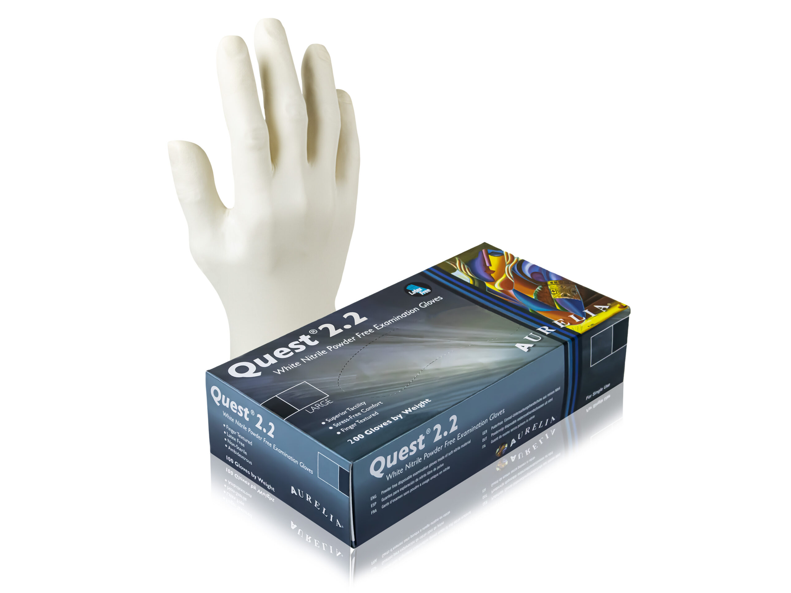 Aurelia® Quest 2.2® Premium White Nitrile. 200 Pairs per Box, Sold in Boxes.