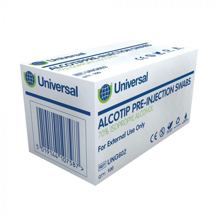 A 70% Isopropyl Alcohol impregnated swab in a moisture-proof sealed sterile sachet.