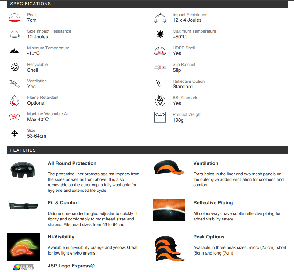 The distinctive Swoop represents the trusted and genuine bump caps manufactured by JSP® and sold globally.