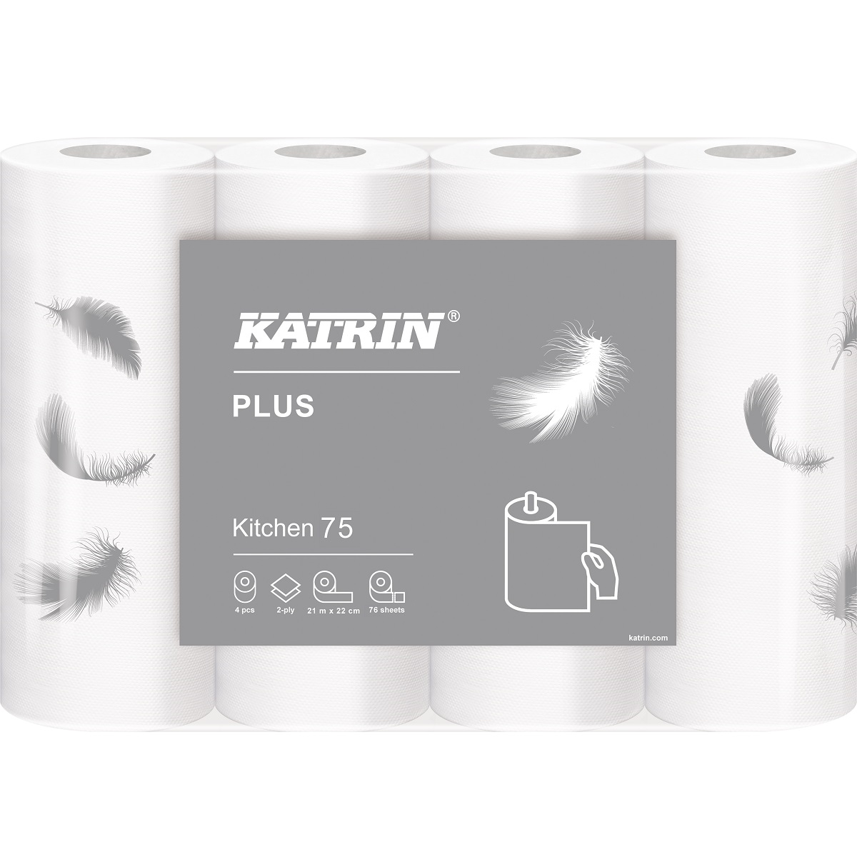 Katrin Plus Kitchen Rolls 75 a high quality household paper that is very absorbent 2-Ply, white extra soft and highly functional. Katrin kitchen towels have been developed to be strong and absorbent enough for your everyday household needs
