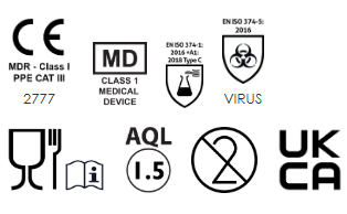 - Conforms with the requirements of EN ISO 374-5, for protection against bacteria & fungi