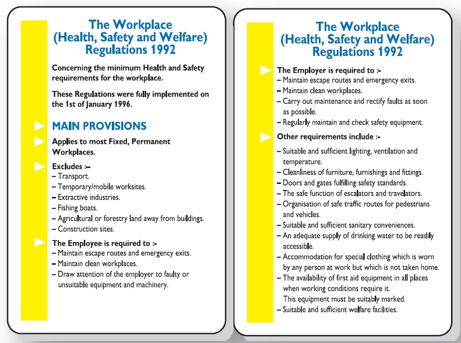 The Workplace Health Safety & Welfare Regulations 1992 Pocket Guide