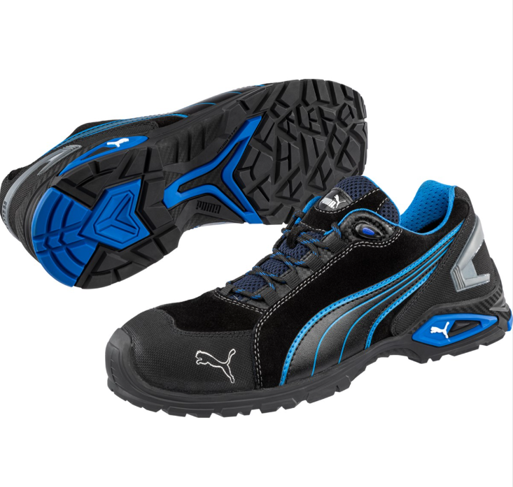 Do safety shoes have to look like safety shoes? No, the RIO BLACK LOW of the PUMA SAFETY METRO PROTECT series connects masterly lifestyle with the high demands on safety. Thus, it becomes easily part of our modern world of work. The unique outsole, completely made of TPU, owns performance characteristics which are known from high-quality soccer shoes: an extremely flat sole design, long durability, optimal grip and high flexibility. The hoisted front cap protects the leather in the toe area from abrasion, especially during work on the knees. The directly in the heel area integrated ldCELL absorbes hits and shocks immediately when the heels touches the ground and protects ligaments and joints. The evercushion® PRO footbed represents optimal damping and therefore long-lasting wearing comfort.