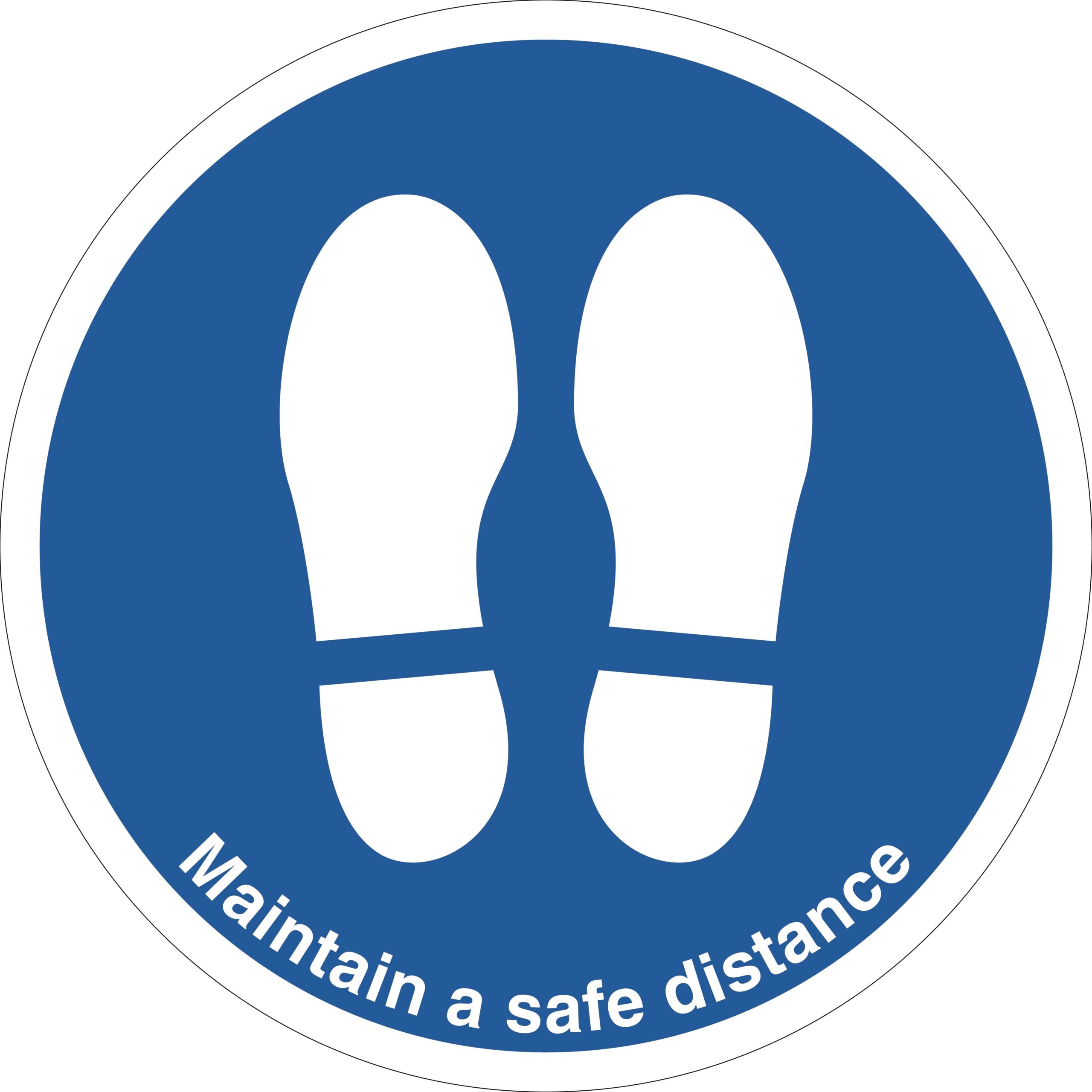 SDIS108BBASV – 450mm Dia Maintain Safe Distance Feet Blue Anti-slip Floor Sign