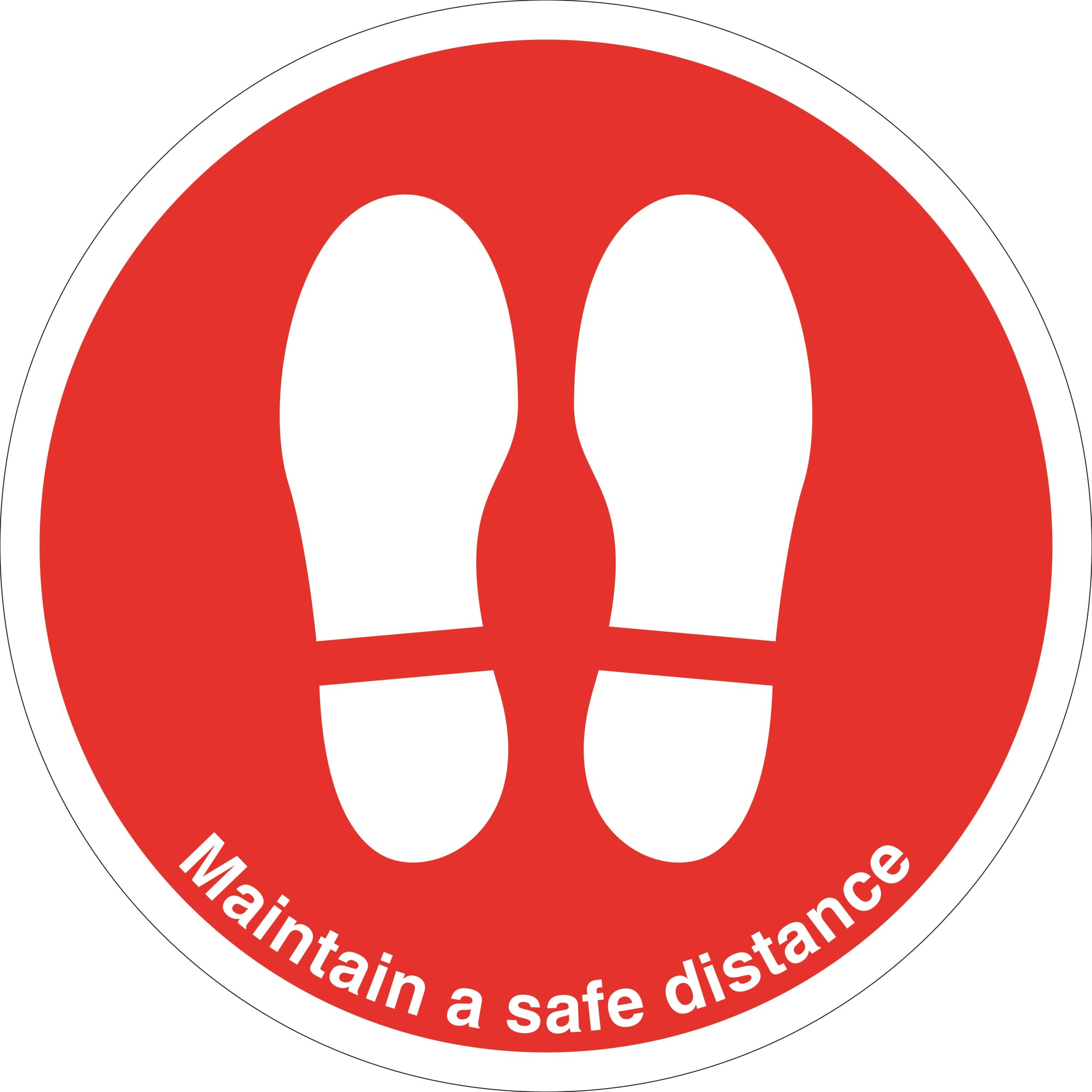 SDIS110BBASV – 450mm Dia Maintain Safe Distance Feet Red Anti-slip Floor Sign