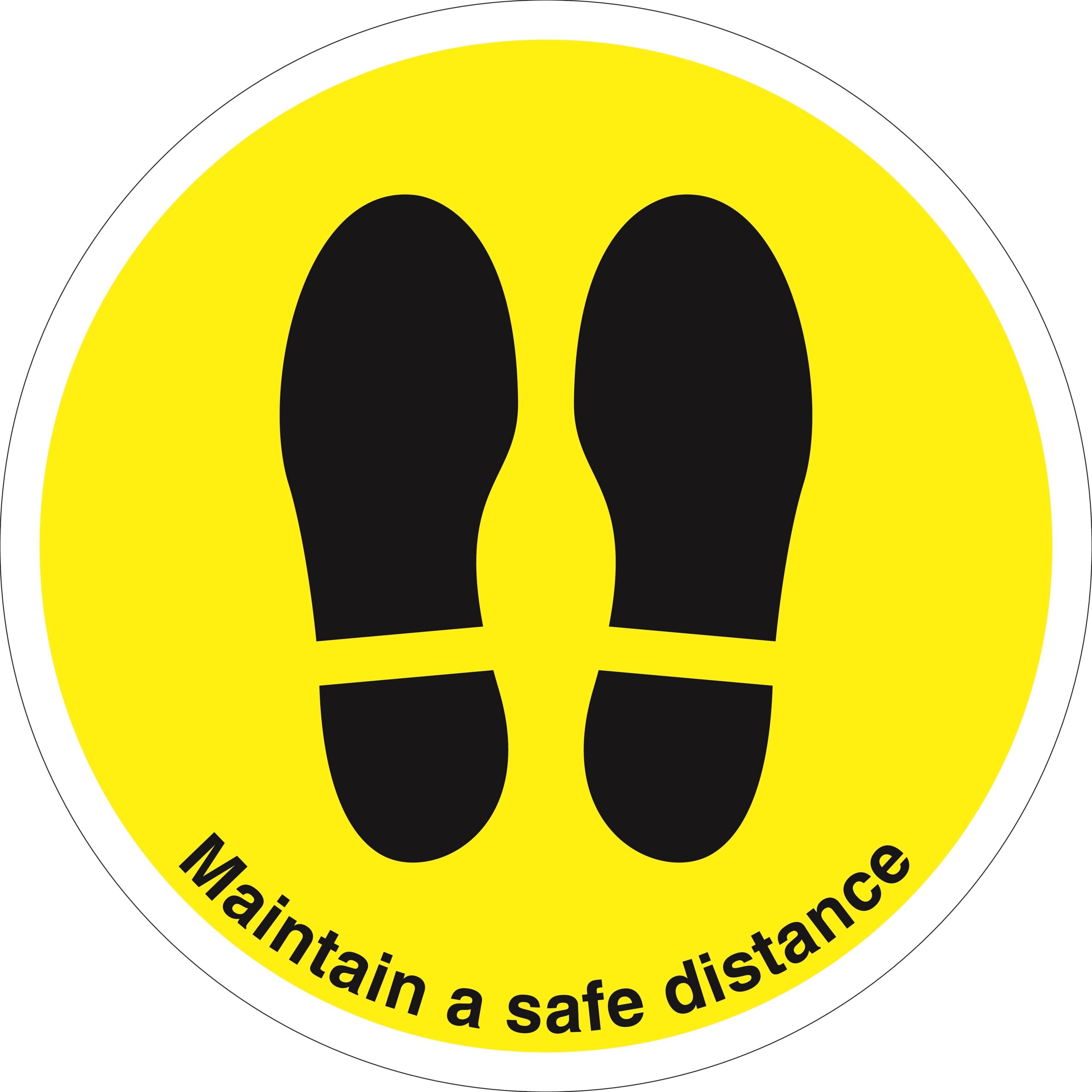 SDIS111BBASV – 450mm Dia Maintain Safe Distance Feet Yellow Anti-slip Floor Sign