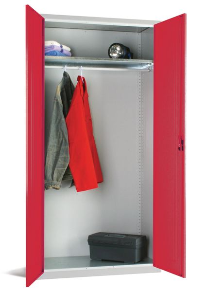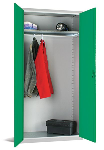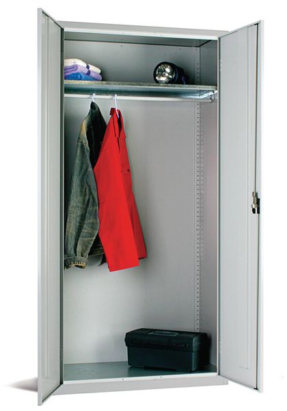 Type With 1 Shelf and Hanging Rail, With 3 Shelves, With 3 Shelves and Additional Hasp & Staple Lock, With 4 Shelves and Hanging Rail.