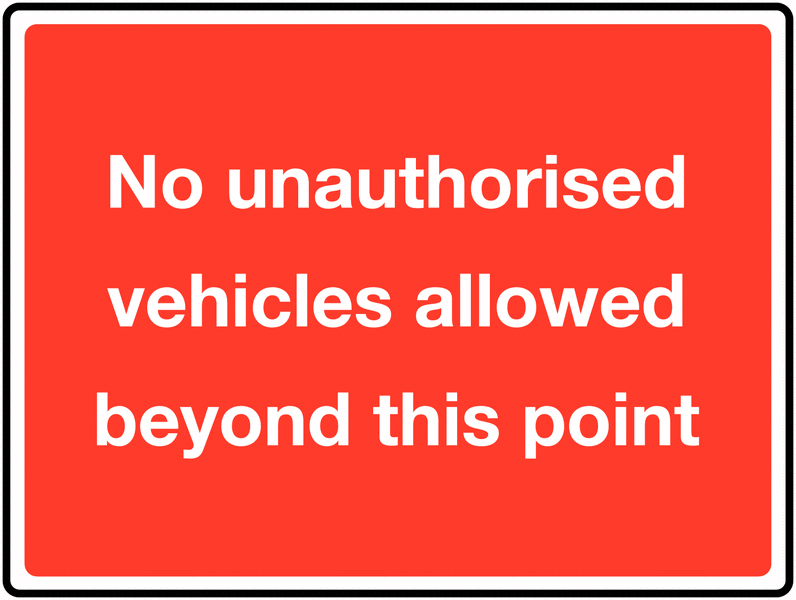 No unauthorised vehicles allowed beyond this point Class 1 Reflective Traffic Sign (Post)