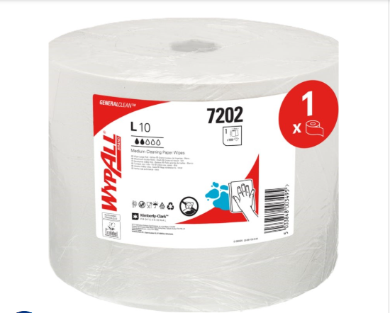 The white version of WypAll® L10 wiping paper, 7202 is a single-use, 1 ply jumbo roll ideal for light-duty surface cleaning. Designed for use in industrial and processing environments, it offers the same Airflex™ strength and performance in a clean, white sheet.